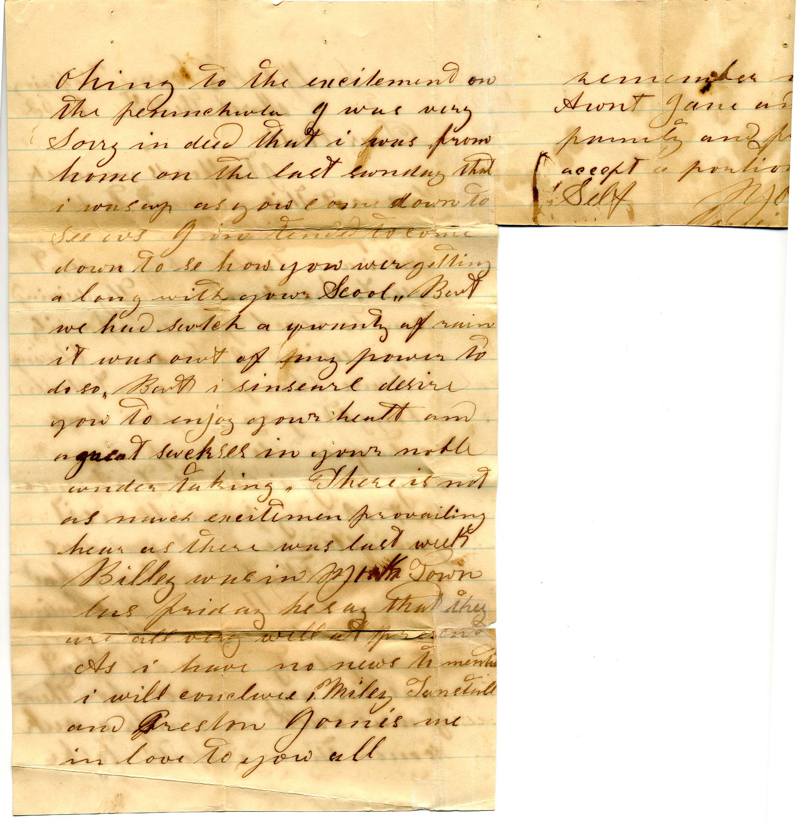There is a somewhat strange piece of the letter (a "third page") that can't be scanned in full, thus pages 2 and 3 are digitally cropped. This extra piece was done contemporaneously as writing is all there.