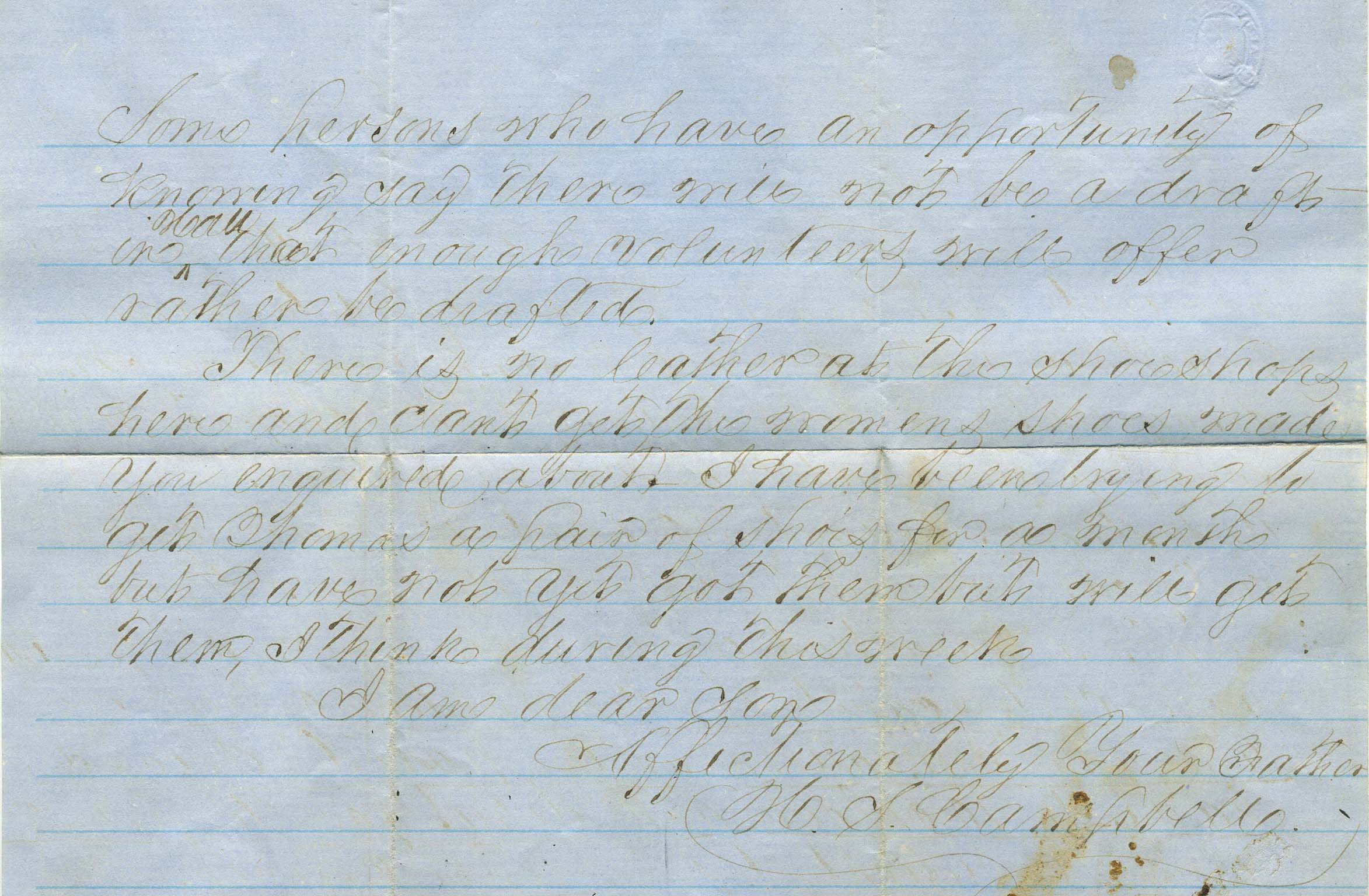 GAINESVILLE / Ga. // MAR / 3 [1862] cds with matching PAID / 5 (CSA catalog type B, CCV $200) on cover to W. J. Campbell, Atlanta, Ga., large sealed tear from bottom to center of cover, beautifully scripted 2-page letter from father H.S. Campbell to his son saying, in part, that he is glad he has a certificate if only for two months and to be sure to present it to the proper officer. $90.