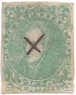 CSA 3, 2¢ green used with pen cancel, rebacked over faults. Spacefiller. $90. |
